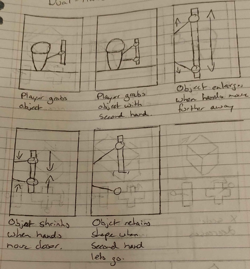 However, upon further thought, I realised that that design could work on a PC, but it was too static for a VR game, so I reiterated the design to be more “hands on”, and have the player simply stretch or squish the item to their heart’s content, similar to stretching or squishing dough or Blu-tack.